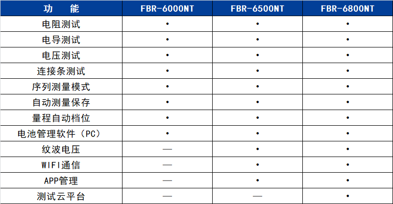 ● 測試類型:可測試電壓、內(nèi)阻、電導(dǎo)及連接條參數(shù)指標(biāo),還可根據(jù)用戶需求升級微歐、溫度、鋰電巡檢等功能