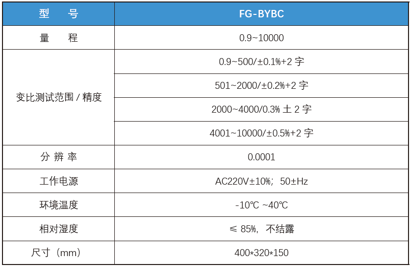 快速測試:采用三相輸出電壓,三相加壓,三相同時測量,提高測試速度,可以很輕易的自動識別變壓器接線組別0-11技術參數