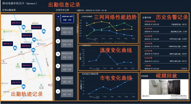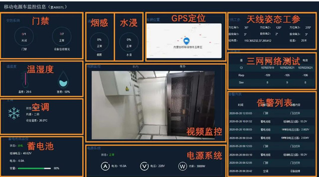 可實現對所有箱體車的GIS定位、通信網絡及設備監測、動力環境監控形成“威脅發現、態勢感知、即時預警、溯源處置”的核心能力,建立起多層次、多維度的動態預維護管理平臺,增強運營商對通信網絡的全天候、全方位的態勢感知能力