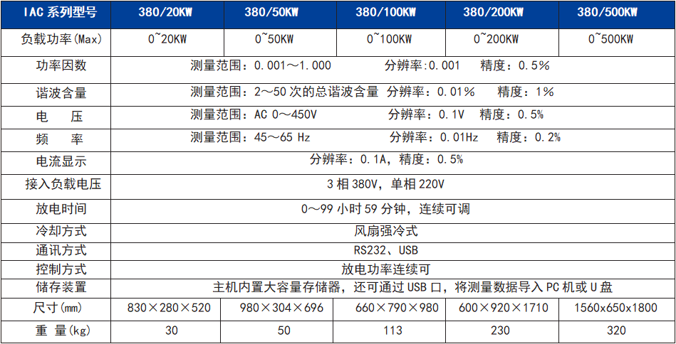 IAC380系列智能交流假負(fù)載具備智能控制技術(shù),實現(xiàn)帶載放電和參數(shù)檢測的同步完成。測試 后數(shù)據(jù)可通過后臺軟件自動生成測試報告。是UPS、發(fā)電機(jī)等交流電源設(shè)備工程驗收及日常 維護(hù)必備的測試儀表。可廣泛用于通信、電力、民航等部門及工廠企業(yè)的在線大功率UPS、 逆變器及柴油發(fā)電機(jī)組的性能檢測、老化等場合。