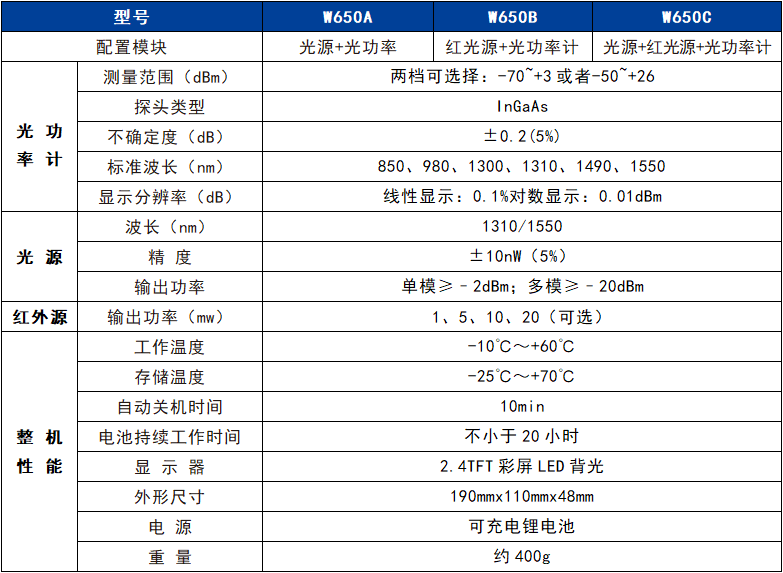W650系列光萬用表是手持式光功率計和手持式光源的集成PA電子,可根據用戶要求提供1到4個波長的穩定輸出,既可以提供650nm可見紅光,也可以向單模光纖測量提供1310nm和1550nm的雙波長激光輸出,或者同時提供850/1300/1310/1550nm四個波長激光輸出。光源??楹凸夤β始頗?榭梢醞筆褂茫憒蠊こ灘饈勻嗽幣約凹際躒嗽碧峁┝肆磽庖恢質褂酶獎?、成本更低的選擇,是光纖通信工程中施工和維護的得力工具。