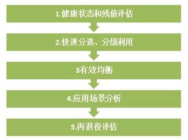 再退役評估:梯次電池投入使用后,除BMS系統日常監測外,定期的容量測試,開展電池性能驗證,綜合該批次梯次電池分選時的健康狀態(SOH)確定退役標準,低于應用場景使用要求進入電池回收系統流程。