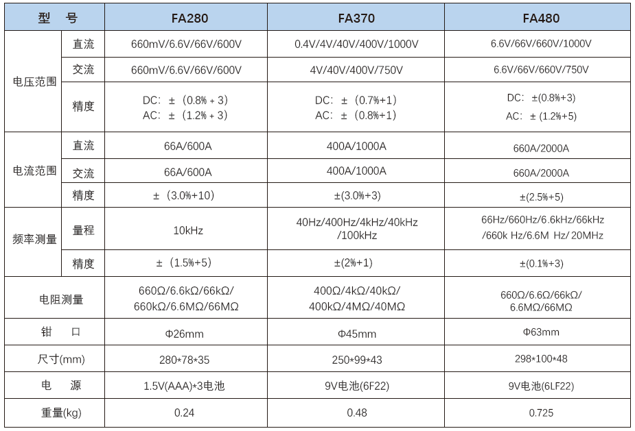 FA系列交/直流兩用鉗形表為便攜的、專業的測量儀器,具有液晶數字顯示器,并有背光源,用戶容易讀數。量程開關單手操 作便于測量,具有過載保護和低電池指示。無論專業人員、工廠、學校、愛好者或家庭使用,均為一臺理想的多功能儀表。本 PA電子符合GB/T13978-92數字多用表通用技術;符合GB4793.1-1995(IEC-61010-1)電子測量儀器;安全要求屬二級污染, 過壓標準為CAT III 600V等條件。